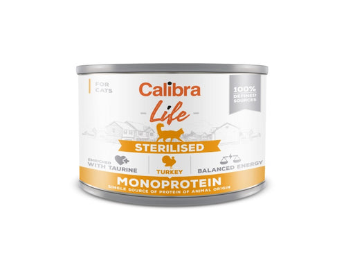 The Calibra Cat Life Sterilised Wet Cat Food withTurkey is a complete wet food that is calorically balanced. The recipe is composed of a limited number of ingredients and a single protein. It is grain-free and gluten-free, which makes it easily digestible. It contains only 100% defined ingredients of the highest quality.