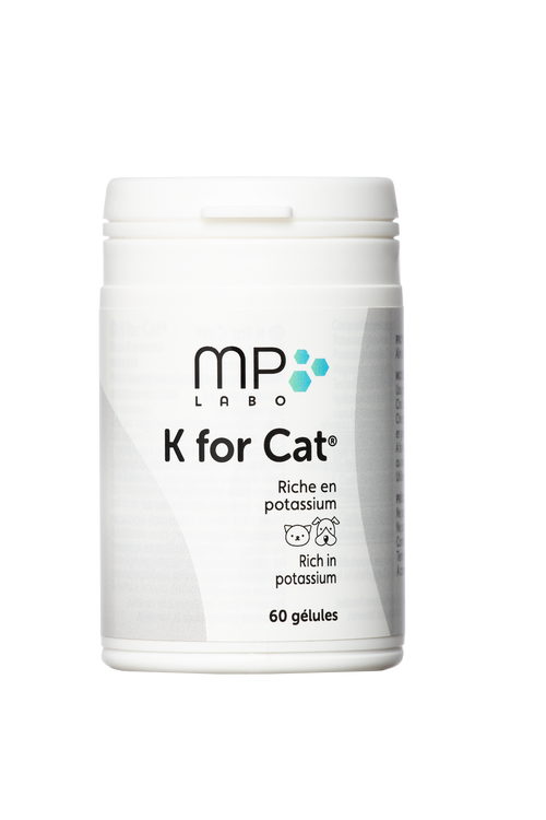 K for Cat is a complementary feed designed to support potassium levels in cats and dogs. Low potassium, known as hypokalaemia, can occur in pets due to chronic health conditions like kidney issues. K for Cat provides 468 mg of potassium gluconate per capsule to help restore balance, maintain membrane potential, and support enzyme functions.