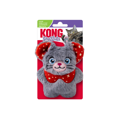 KONG® Holiday Snuzzles Mouse is plump-full of fun and the perfect present for cats who love batting, wrestling, and solo play. Inner crackle material and KONG Premium North American Catnip build excitement and extend playtime. When kitty is all tuckered out, this fuzzy, plush mouse is ideal for snuggling and makes the perfect pillow for catnaps.