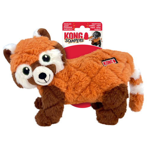 KONG Scampers wildlife characters offer a low-tone squeaker that entices curious play, while the quilted plush body is ideal for snuggling.
