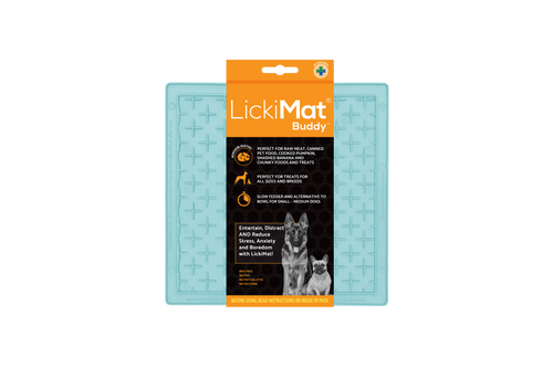 The LickiMat® Classic Buddy™ slows feeding, reduces anxiety, boredom, and destructive behaviour in your dog or cat whilst providing a versatile platform for foods and treats.
