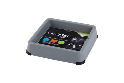 The Indoor Keeper Lickimat Pad Holder is a 2-in-1 dog food bowl and standard-sized Lickimat holder that secures Lickimats inside to help prevent messes and secure the Lickimat in place.