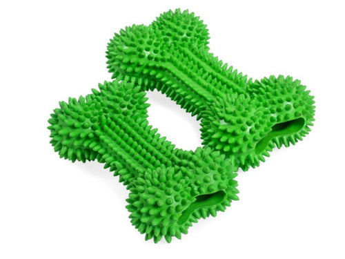 Toyz Treat Bone Dog Toy helps to keep dogs stimulated and their teeth clean. Made from tough natural and non-toxic rubber material. This chew bone is great to keep dogs stimulated by providing an outlet for their natural need to chew. Covered in dental pimples to help keep teeth clean and massage gums. Add treats via the opening at each end of the bone for extra puzzle and reward stimulation.