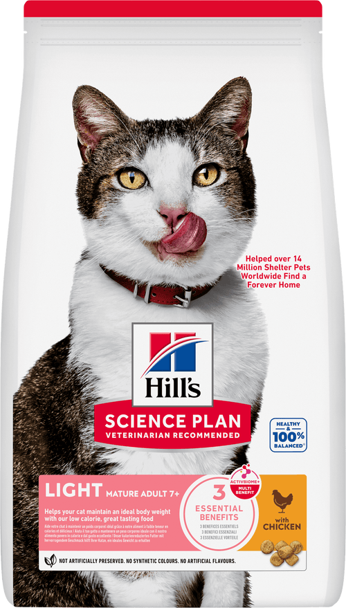 Hill's Science Plan Light Mature Adult dry cat food provides precise nutrition for less active mature adult cats requiring a low calorie food to maintain a healthy weight & lifestyle.