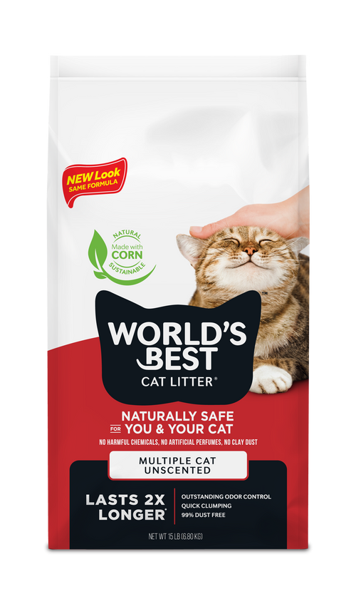 World’s Best Unscented Corn Fine Granule Quick Clumping Multi Cat Litter.
